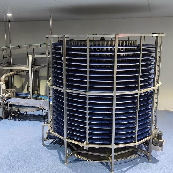 Adopting a vertical counter‑flow spiral conveyor design, it greatly extends cooling paths within a small footprint, improving space utilization and supporting high‑volume continuous production.